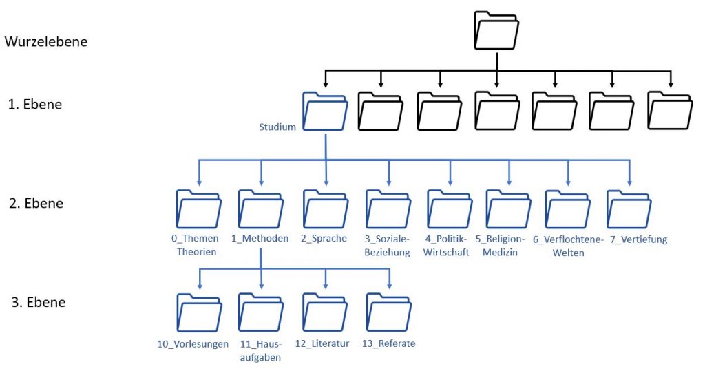 Das Studium der Sozial- und Kulturanthropologie im Kombi-Bachelor an der FU Berlin (vgl. https://www.fu-berlin.de/studium/studienangebot/grundstaendige/sozial_kulturanthro_kombi/index.html) beinhaltet folgende Module (Stand: 08/22). Entwerfen Sie für das Bachelor-Studium eine Ordnerstruktur als Verzeichnisbaum und visualisieren Sie diesen.